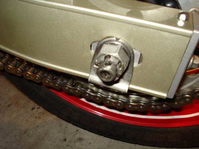 Kontermuttern von den Kettenspannern lösen und mit den Kettenspannern die Kette lockern