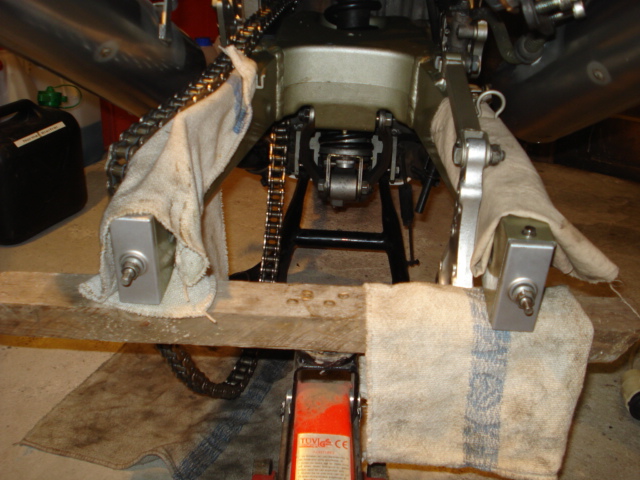 An der ausgebauten Schwinge kann man auch gut das Fett über die Schmiernippel erneuern, bzw im wieder eingebauten Zustand auffüllen.