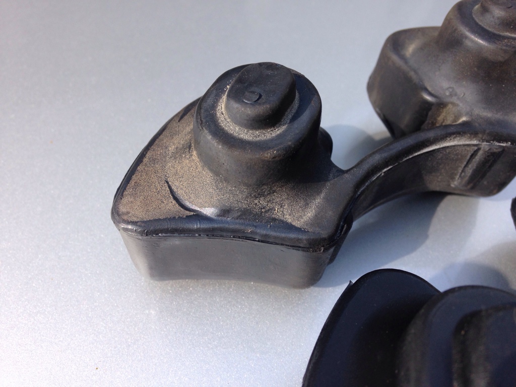 So hier mal alt gegen neu. Die Neuen sitzen wesentlich strammer im Gehäuse, sind auch etwas härter als die alten. Hier nochmal schön zu sehen das Belastungsbild der alten Gummis, wie weit die nachgeben bzw. einknicken.