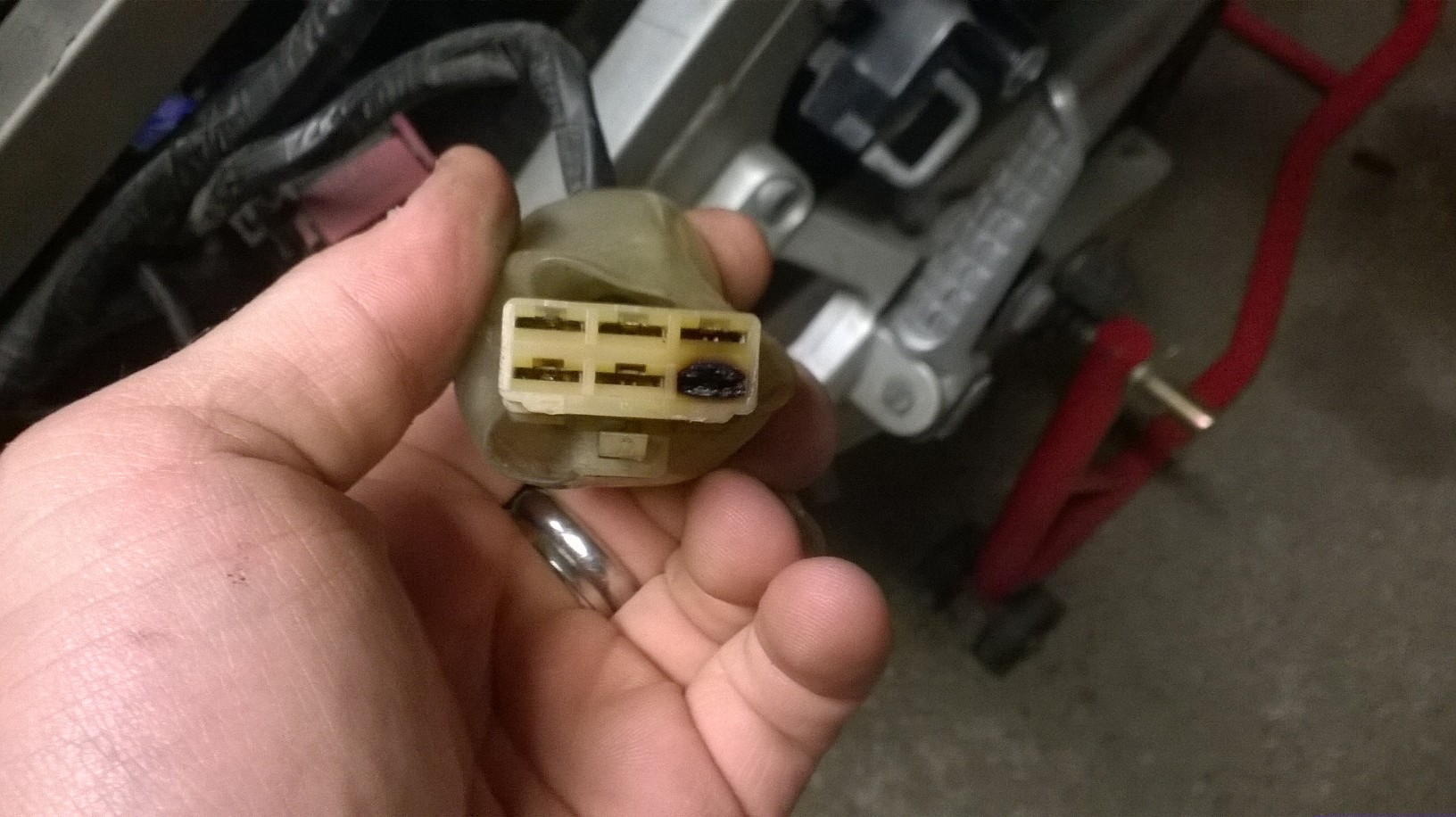 Der dreipolige Stecker zudem die drei gelb schwarzen Kabel wandern ist mal sehr warm geworden teilweise aneinander geschmolzen wie auf dem Bild zusehen ist.