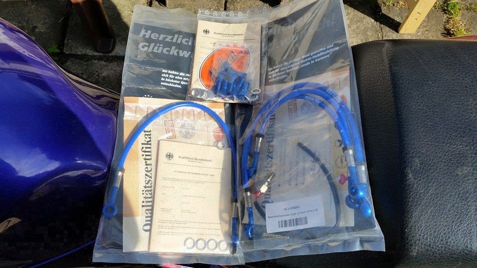 Mal sehen, wann ich Zeit finden werde, die Stahlflex-Leitungen anzubauen... Denn: mangels Garage kann ich nur bei schönem Wetter schrauben, aber bei schönem Wetter möchte ich fahren. Was nun?