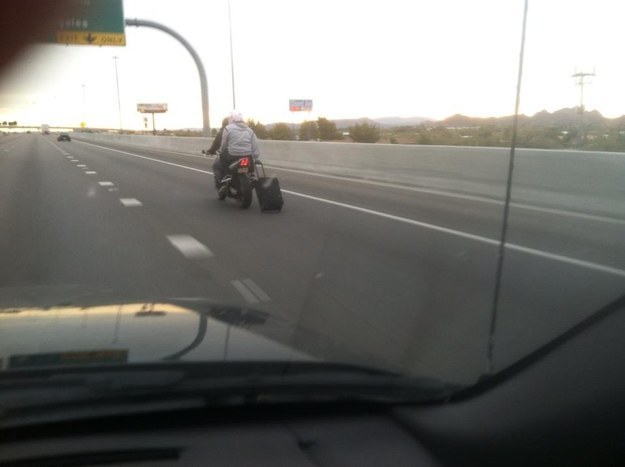 Ha ha, ist ja geil, ein Rollkoffer wird mal seinem Namen gerecht.