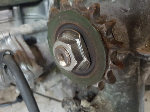 Dank dieser Gummiwulst passt aber das Sicherungsblech nicht mehr vor das Ritzel. Es ist gerade soviel seitlicher Platz das die Mutter drauf passt.