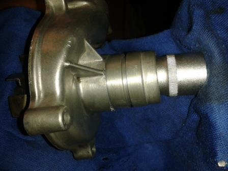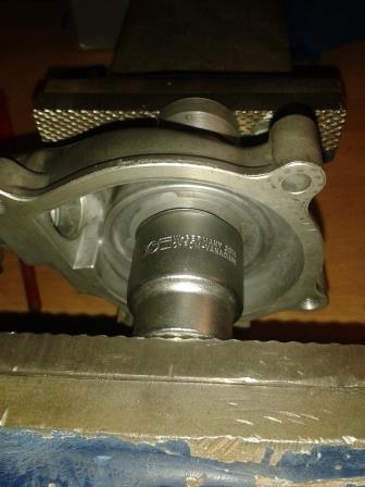 Anschließend den Gleitringteller mit der Wellendichtung einsetzten und eine 27 Nuss darüber setzten. Zusammen wird es mit einem Schraubstock eingepresst.