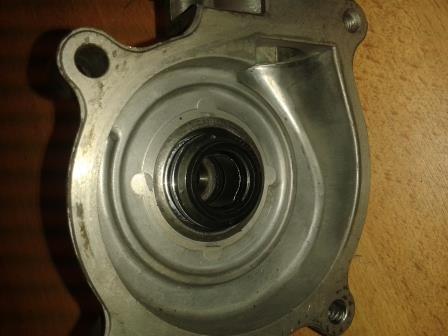 Die Welle nach Vorn durchschlagen. Es kommt die Gleitringdichtung zum Vorschein.