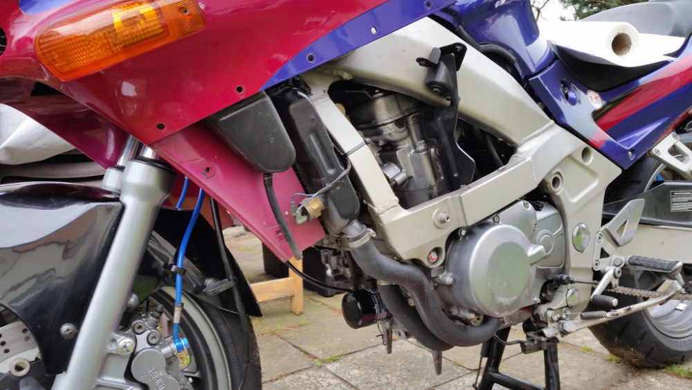 Ein Ölwechsel an einer ZZR, wo der Ölfilter bestimmt schon seit 10 Jahren drauf sitzt. Wissend, stand die Karre die letzten 6 Jahre ungefahren rum.