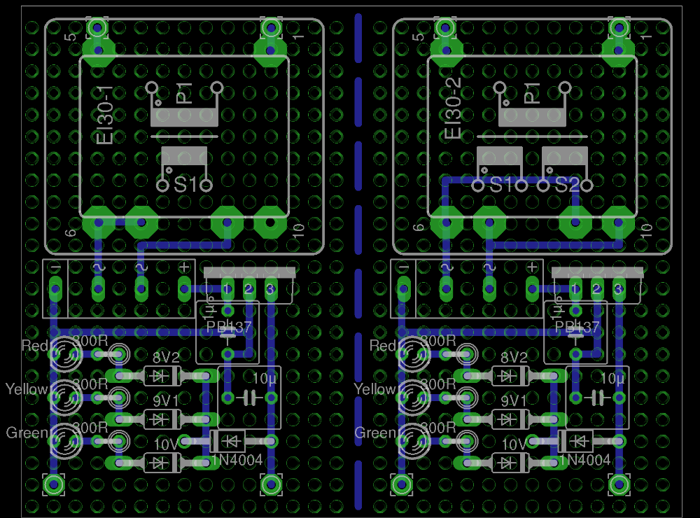 (Schaltung wird mit zwei Printtrafovarianten dargestellt)