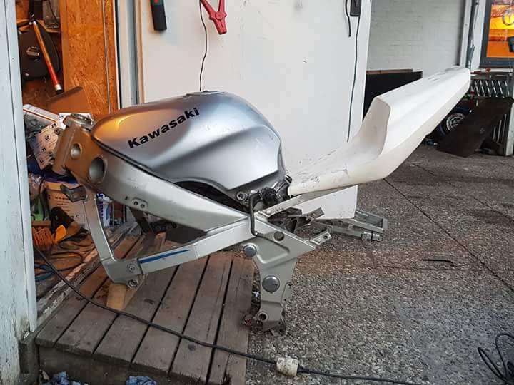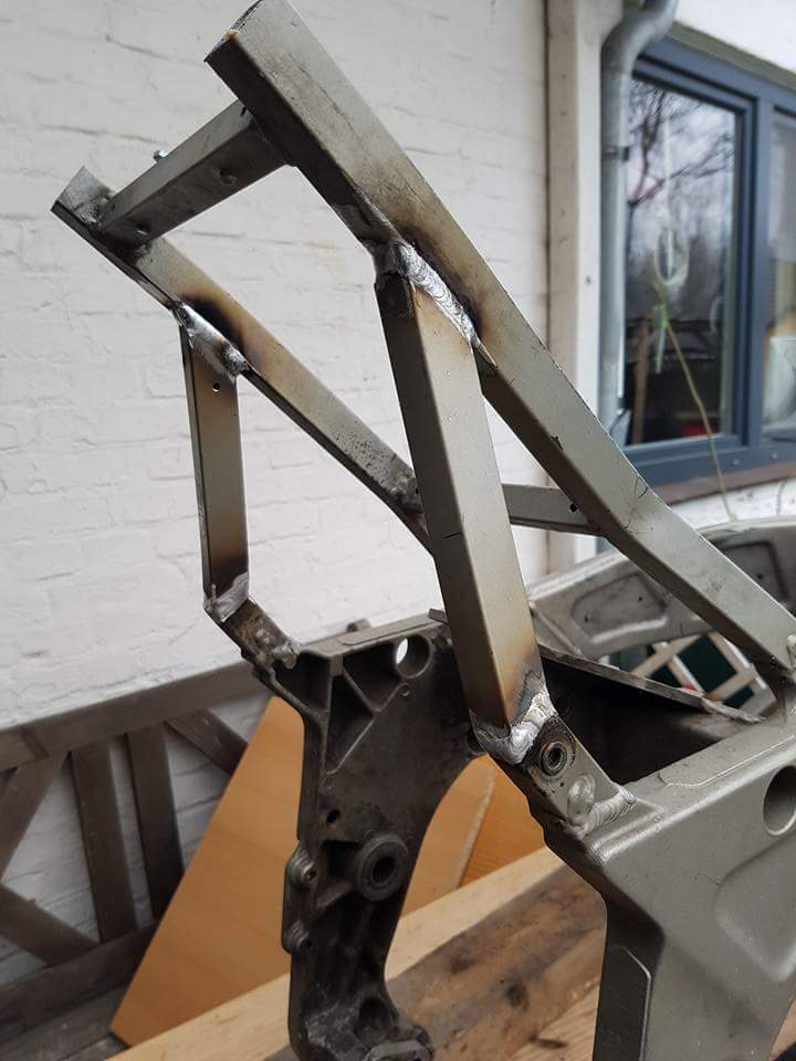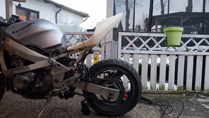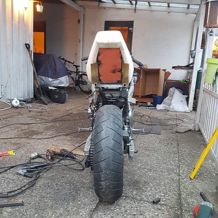 Wahrscheinlich kommt eine andere Schwinge mit 190er Reifen. Stoßdämpfer hinten kommt danach..