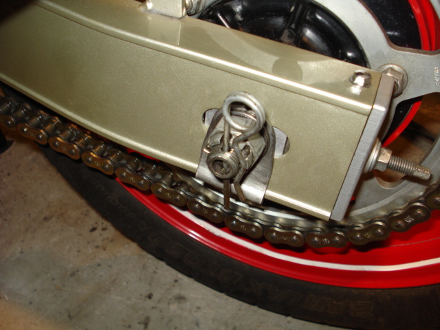 Kontermuttern von den Kettenspannern lösen und mit den Kettenspannern die Kette lockern